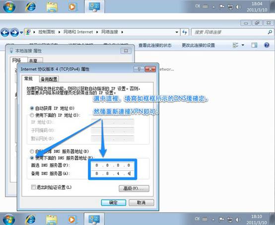 对于最近较为常见的网址劫持,推荐大家使用谷歌的 dns服务:8.8.8.8/8.8.4.4,可以按住Ctrl进行多选,然后按右键,选择设置dns,在弹出的选项中,如果有线宽带选择“本地连接”,如果用Wifi就选择“无线网络连接”。当然,可以两个都打钩: